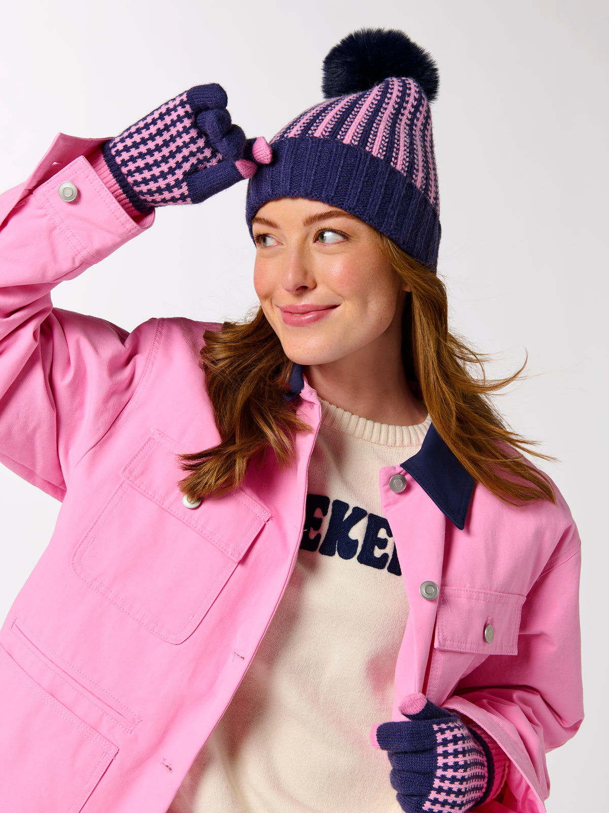 Add a pop of color and plenty of warmth to your winter style with the Hadley Touchscreen Gloves. These cozy knit gloves feature a playful two-tone houndstooth design and ribbed cuffs that keep the chill out. Better yet, the touchscreen-friendly fingertips let you scroll, snap, and text without ever exposing your hands to the cold. Available in a variety of vibrant color combos, they’re a cheerful cold-weather essential.