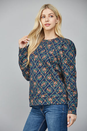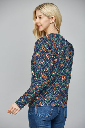 A floral print with a little personality. This long sleeve top features subtle puff sleeves and a flattering, relaxed shape that layers easily under your favorite jackets. It’s an easy blend of comfort and pretty details—perfect for both busy mornings and slow weekends.