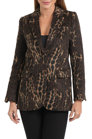 Leopard print is a fierce and fresh alternative to the usual neutrals. Love Token's Kate Blazer features a classic tailored cut with a notch lapel collar, single breasted front button closure, and front flap pockets.