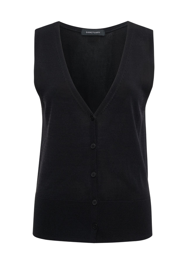 Keep cool all season long with this new top from Sanctuary! This mesh knit vest features front buttons and a v-neckline. Wear alone or over a tee for a classic and cool style.