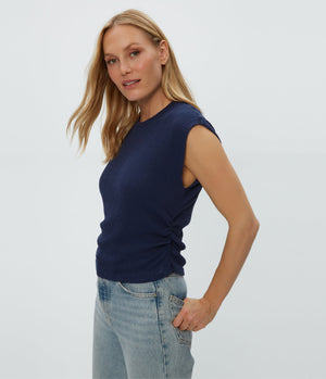 Adding a bit of luxe to a classic style, the Leighton comes in Michael Star's textured Crinkle Knit fabric. Featuring a bold shoulder detail that’s easy-to-love. The body-hugging fit shows off side ruching for added detail and to accentuate you in all the right ways.