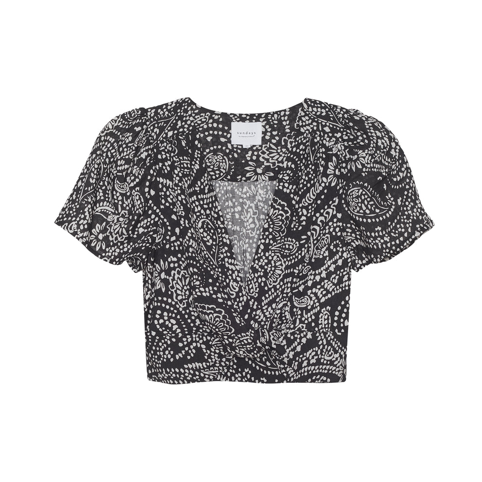 A nod to nostalgic summer prints, this vintage bandana-print crop top features a deep V neckline that twists to elegantly frame the collarbone. A smocked back offers a flexible and flattering fit. Designed to hit just above most wearers’ belly buttons, it pairs perfectly with the matching Yara Skirt for a standout, coordinated look. Effortlessly cool and endlessly wearable — your go-to for sun-soaked days.
