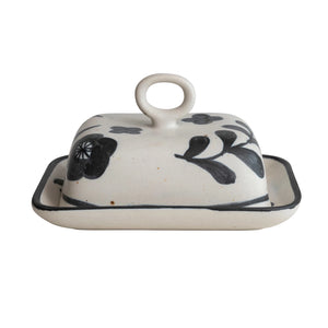 Your butter has never looked chicer than in this butter dish from Creative Co-op. This set features both a stoneware square and lid to keep the bugs away from your sweet butter. Enjoy the handprinted floral design that adorns the entire set.