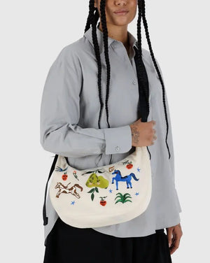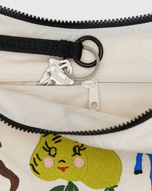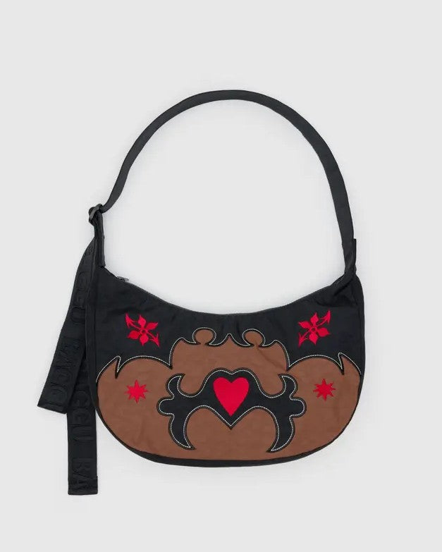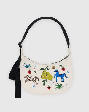 Practical doesn’t have to be boring. Baggu's Medium Nylon Embroidered Crescent Bag is effortlessly casual and large enough to carry more than just the essentials. Wear it slung over your shoulder or crossbody for a hands-free experience. Complete with two interior pockets that make it easy to stay organized.