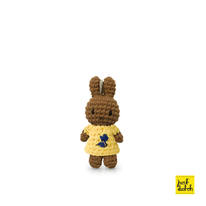 Just Dutch Handmade Crochet Melanie Keychain. Enjoy Melanie in this fit inspired by the painting Irisesby Van Gogh.