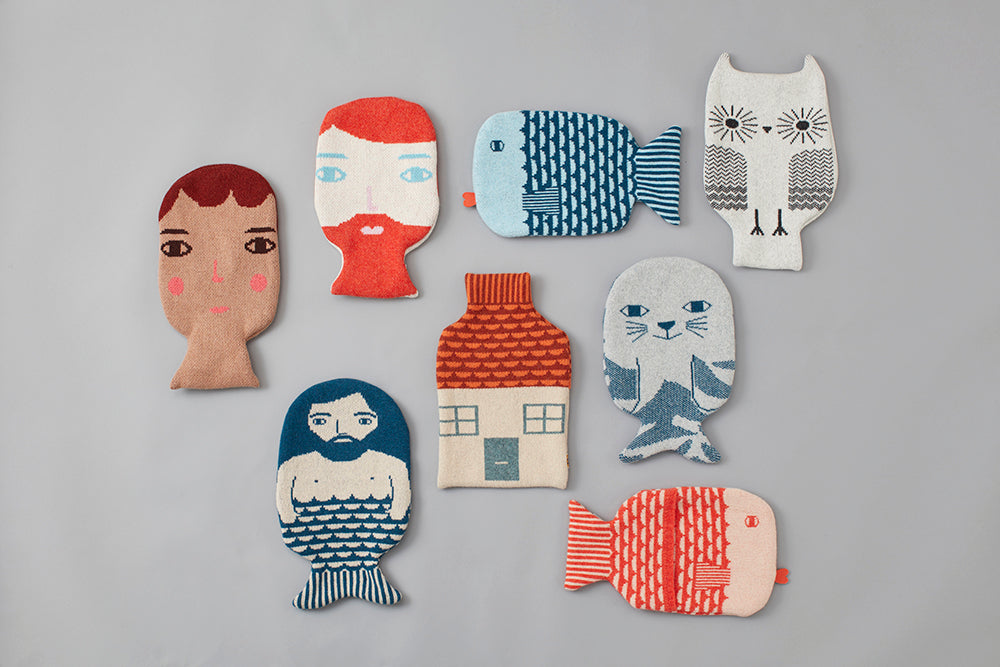 Cuddle up with your very own merman to keep you warm and cozy. Use this hot water bottle with a knitted cover to keep warm on a chilly evening or to soothe your aches and pains.