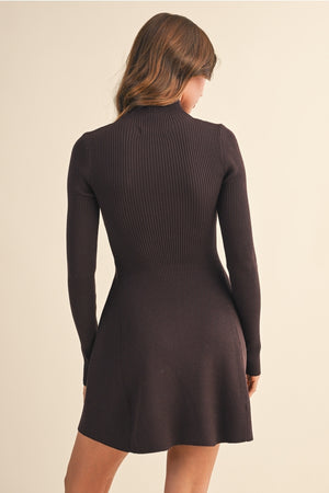 Stay warm and stylish in this simple yet chic dress from Klesis. In a neutral brown color, this ribbed knit dress features a turtleneck with a fit and flare silhouette for effortless femininity.