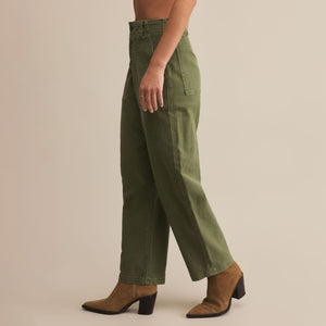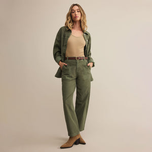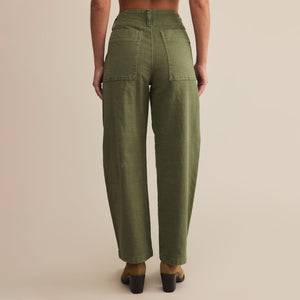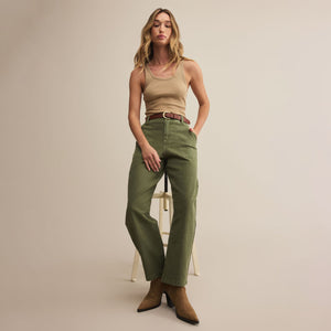 Step into comfort and style with the Z Supply Olive Twill Pants. Featuring a high-rise fit and ankle-length barrel leg, these pants offer a flattering silhouette with a playful twist. The zip fly with button closure and stitch pockets add both function and flair. Perfect for mixing and matching with your favorite tops for an effortlessly cool vibe.