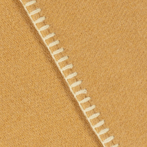 A large, cozy triangle wrap featuring blanket stitch edging, inspired by classic wool picnic blankets—a perfect layering piece for effortless style.