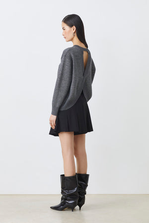 The Suncoo Payeti jumper balances understated elegance with a hint of glamour. Knitted in shimmering grey lurex, it’s cut with a simple round neck and long sleeves at the front, while the open cross-back detail brings unexpected drama. A piece that moves easily from daywear to evening, it layers effortlessly with tailored trousers or contrasts beautifully against a sleek mini skirt.