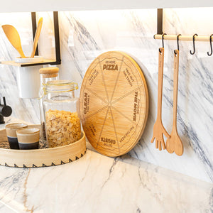 The wooden plate has a diameter of 35 cm, making it ideal for medium-sized and family-sized pizzas. Plus, its 8 slices are marked so you can cut them precisely and avoid the typical arguments over who gets the biggest slice.
