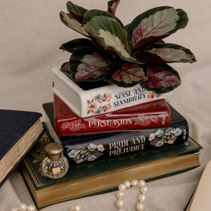Add a literary touch to your home with the Steel Mill & Co Stacked Books Planter, inspired by Jane Austen's classic novels! Shaped like a stack of books, this ceramic planter measures 5 x 7 x 3.75 inches, making it perfect for small plants or succulents. With three of Austen's iconic titles featured in the design, it’s a charming piece for any book lover's space. It even has a drainage hole to keep your plants healthy! Whether for yourself or as a gift, this planter adds a whimsical and practical touch to any room.