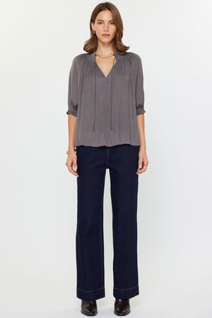 It doesn't get more effortless than this breezy pleated top. Lightweight and airy in a relaxed shape, it manages to be laid-back and elegant at the same time. Tie it up at the neckline or leave it undone to emphasize a nonchalant look.