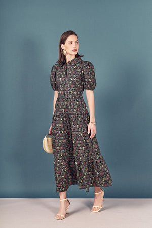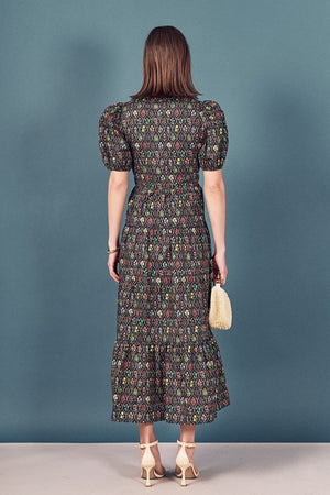 Effortlessly chic, the Print Button Up Maxi Dress is the perfect addition to your wardrobe. The maxi length provides a flowy and flattering silhouette, while the button up front adds a touch of sophistication. Completed with a classic collar and short sleeves, this dress will keep you feeling stylish and comfortable all day long. The eye-catching print is sure to make a statement and spice up your look. Versatile for any occasion, this dress is a must-have for all fashion lovers. Maximize your style and search engine ranking with this must-have piece.