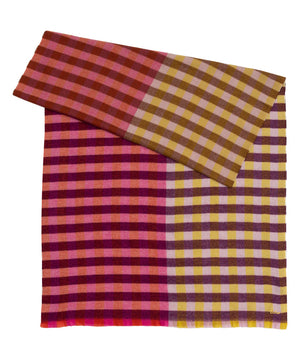 Drawing inspiration from Soho geometrics, this wrap features a custom check pattern designed to form a bold color block in each corner.