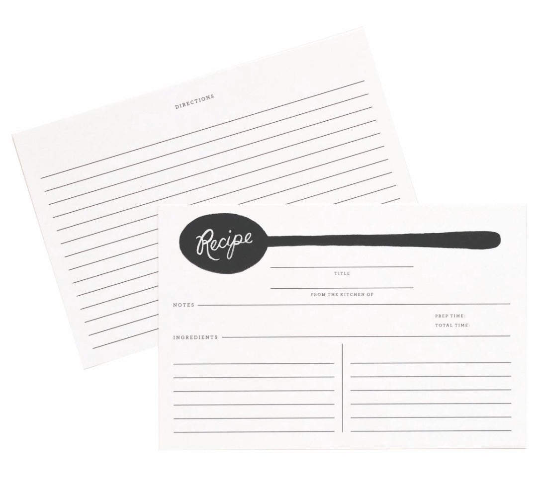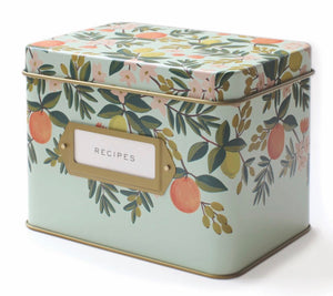 Bring a little cheer and charm to your kitchen with this floral Recipe Tin from Rifle Paper Co. Each box features a gold metallic interior, a gold-framed label on the front, and includes 24 recipe cards and 12 recipe dividers.