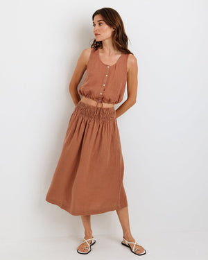 Breezy and versatile, the Smocked Waist Gathered Skirt is your effortless go-to for sun-soaked days to balmy nights. The pretty waistband offers a comfortable, flattering fit that moves with you and the gathered detailing adds natural volume and an easy, flowing drape.