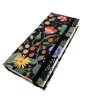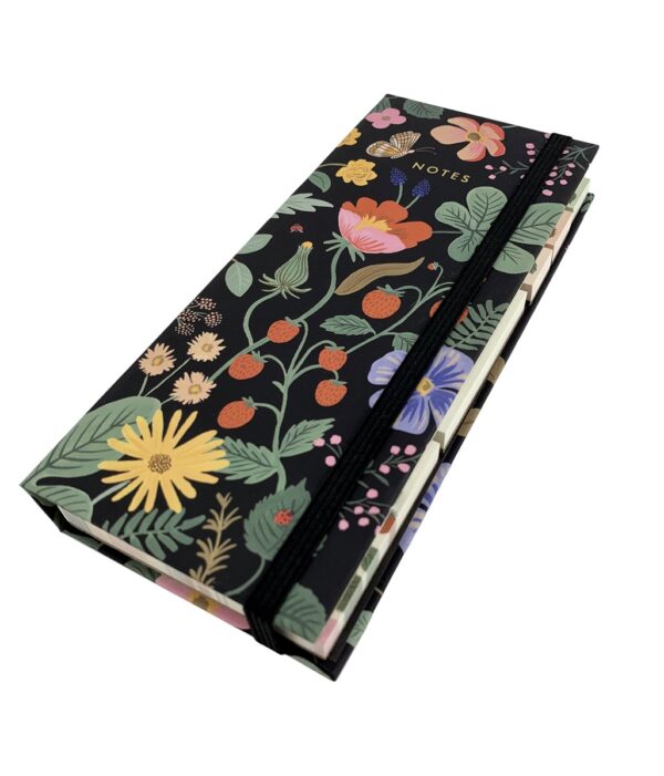 Who said sticky notes had to be yellow? Our sticky note folios include a tear-off pad for making lists and sticky notes for flagging pages and posting reminders. The hard covers feature our Strawberry Fields print, gold foil accents, and an elastic closure.