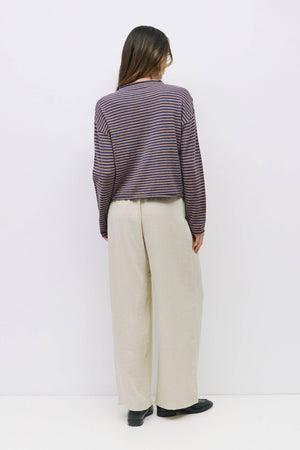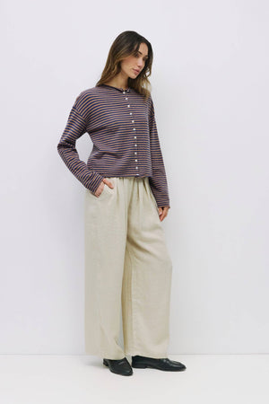 This fun sweater is a striped button-up cardigan designed with a relaxed fit for everyday wear. Finished with rolled edges on the neckline, cuffs, and bottom, it’s crafted from a midweight knit for a comfortable, textured look.