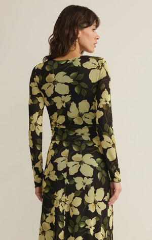 Romantic yet modern, this fitted mesh top features a tonal floral print that adds soft dimension and texture. With sheer sleeves and a lined body, it’s a versatile statement piece that pairs beautifully with denim or layers seamlessly under a blazer. Or complete the look with the Eda Rem Skirt.