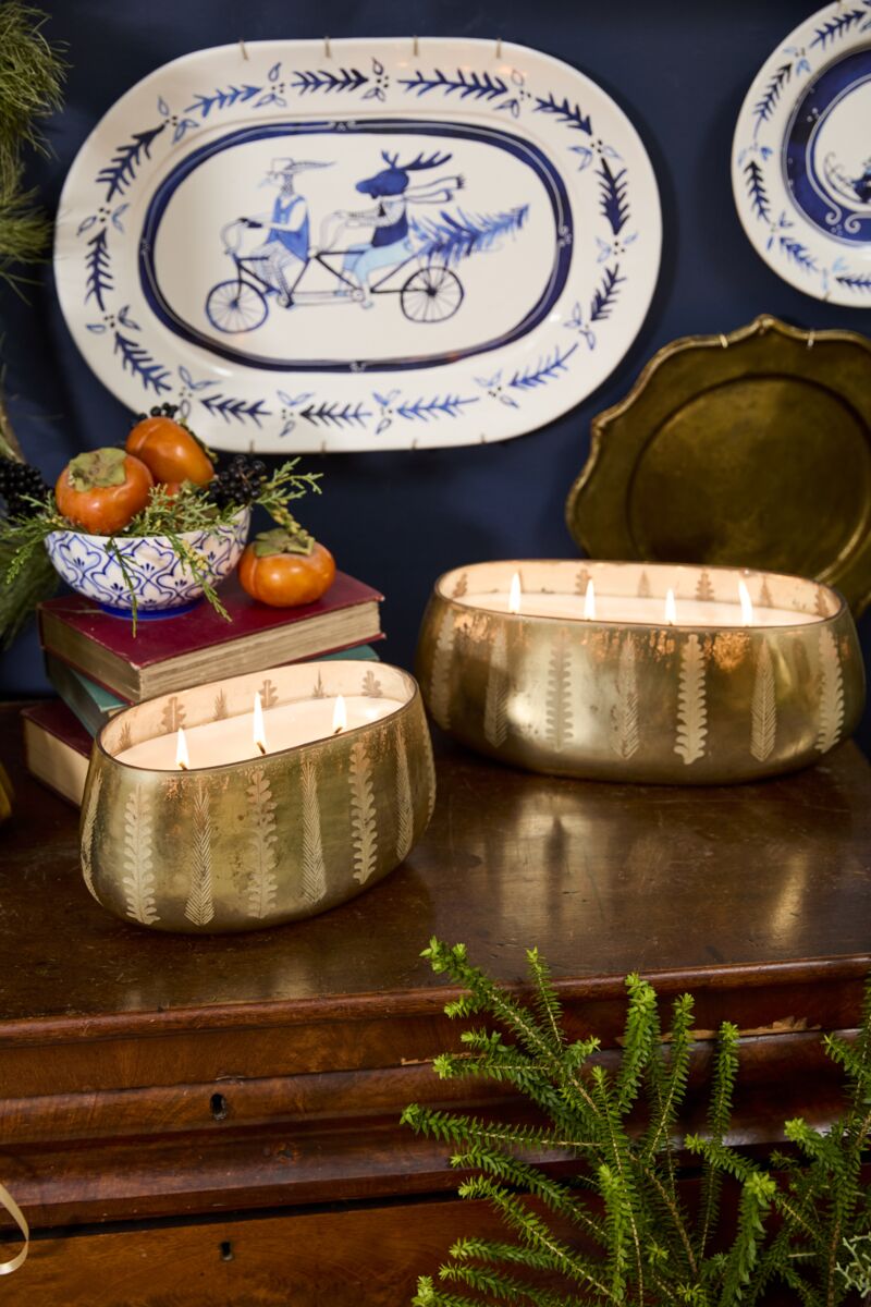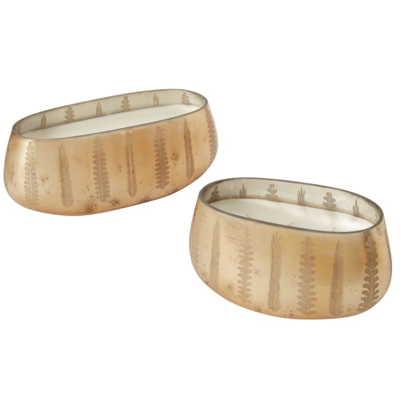 Immerse your home in the warmth of the holidays with the Winter Forest Tiffany Candle from Accent Decor. These candles offer a long burn time of 110 or 128 hours, filling the room with the rich scents of leather, fir, cedarwood, and cracked peppercorn, reminiscent of a cozy Christmas. The etched glass oval vessel, finished in gold metallic, can be repurposed as a decorative holder for greenery, pinecones, or holiday florals once the wax has burned down.