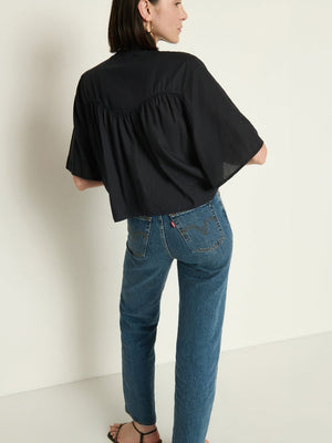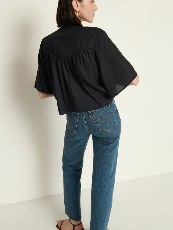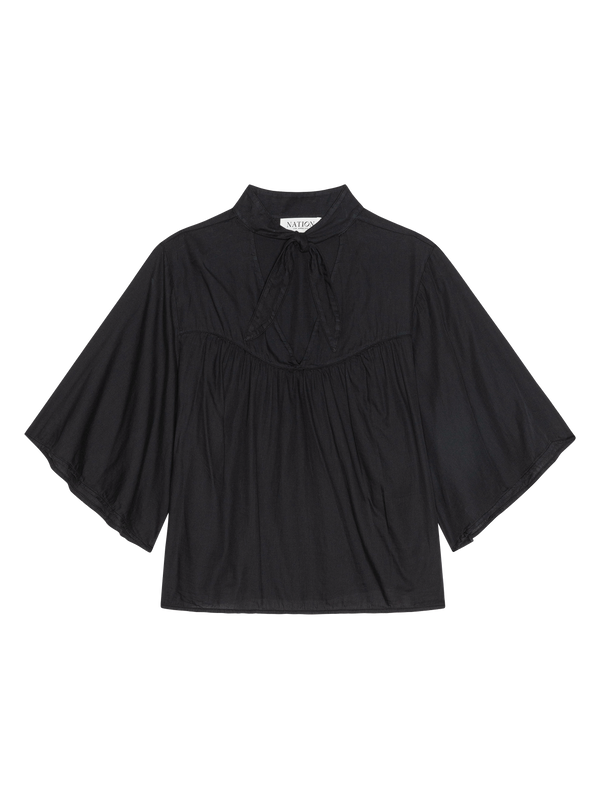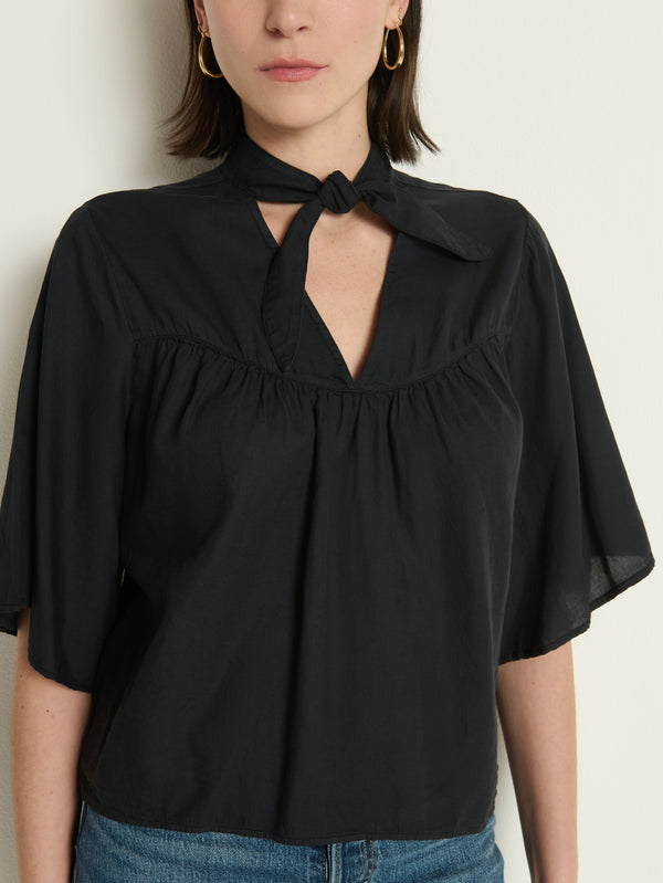 Dress it up, dress it down—just don't overthink it. This airy blouse floats with every move and has a vintage-inspired necktie, flutter sleeves, and a relaxed, draped fit.