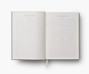 A book-cloth wrapped hardcover, guided journal designed to create a keepsake and capture five years of reflections. Inside find sections for important dates, goals ,moments to celebrate, places to visit, projects to tackle, dreams to pursue, things to remember, things to forget, and daily entries, plus a grosgrain ribbon bookmark.